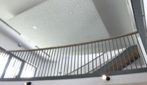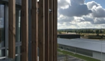 Le bâtiment administratif se développe sur trois niveaux, l’étage supérieur accueillant la salle du conseil communautaire, largement ouverte sur le territoire. Les deux niveaux inférieurs abritant les divers services de la communauté de Communes