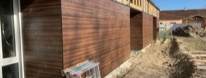 Le nouveau bâtiment en simple Rez de Chaussée, reprend la volumétrie des bâtiments existants, tout en valorisant par ces matériaux la toute nouvelle entité. Son positionnement dès l’entrée de l’EHPAD, permet de ne pas reléguer loin des regards comme souvent ce type de services.