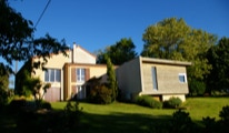 Extension d'une ancienne ferme, par un volume simple en bois abritant les quatre nouvelles chambres de l'habitation.